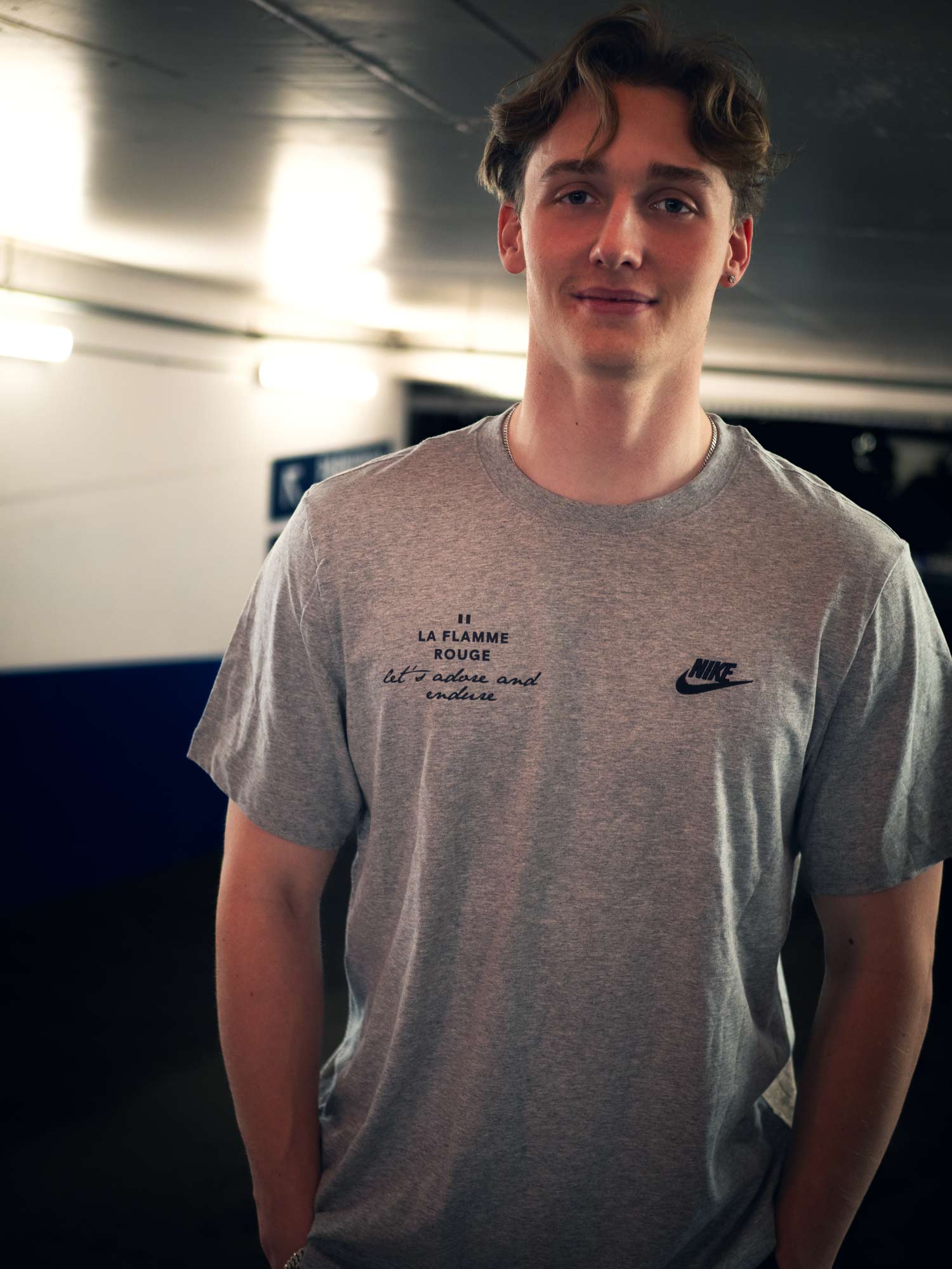 This LFR x Nike T-shirt is made from a soft, comfortable cotton fabric and finished with a clean, understated look. Designed for everyday wear. The La Flamme Rouge logo is placed on the right chest, while a small embroidered Nike logo on the left chest adds a subtle nod to Nike’s signature craftsmanship.